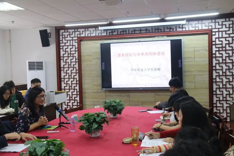 10月10日下午,华中农业大学黑料不打烊 首任院长、博士生导师吴春梅教授,应邀在人文楼B座207会议室为马院师生作题为“学术研究与学术共同体建设”的学术报告,学院部分教师以及研究生参加此次讲座,讲座由院长唐兴军主持。