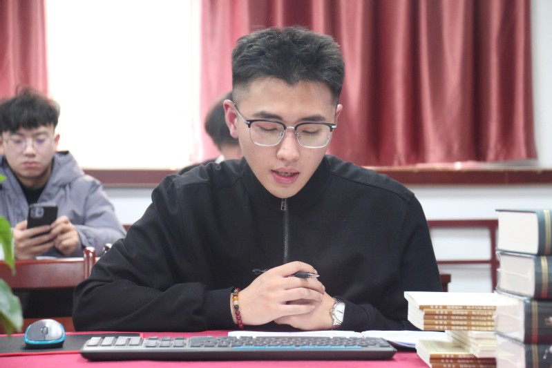 2024级研究生张菡铄同学小组做了题为《马克思学术思想的理论阐释及启示》的学术分享。分享主要从马克思的个人背景、代表作品、主要思想观点以及他的理论对后世的影响和评价这几个方面进行论述。其一,概述关于马克思的生平以及他的学术经历。其二,介绍关于马克思的几部重要著作,如《1844年经济学哲学手稿》《德意志意识形态》《关于费尔巴哈的提纲》《共产党宣言》和《资本论》。这些作品涵盖了历史唯物主义、实践观点、无产阶级的历史使命和劳动价值论等核心思想。其三,探讨关于马克思的理论成就,包括马克思主义哲学、历史唯物主义和政治经济学,以及这些理论如何影响全球政治、经济和文化。特别强调了马克思的理论对中国社会现代化进程的深刻影响,以及马克思主义在中国的本土化发展。其四,马克思的理论不仅揭示了社会历史的规律性,还为理解阶级斗争、劳动价值和人的全面发展提供了深刻的视角,对当代社会依然具有重要的启迪作用。