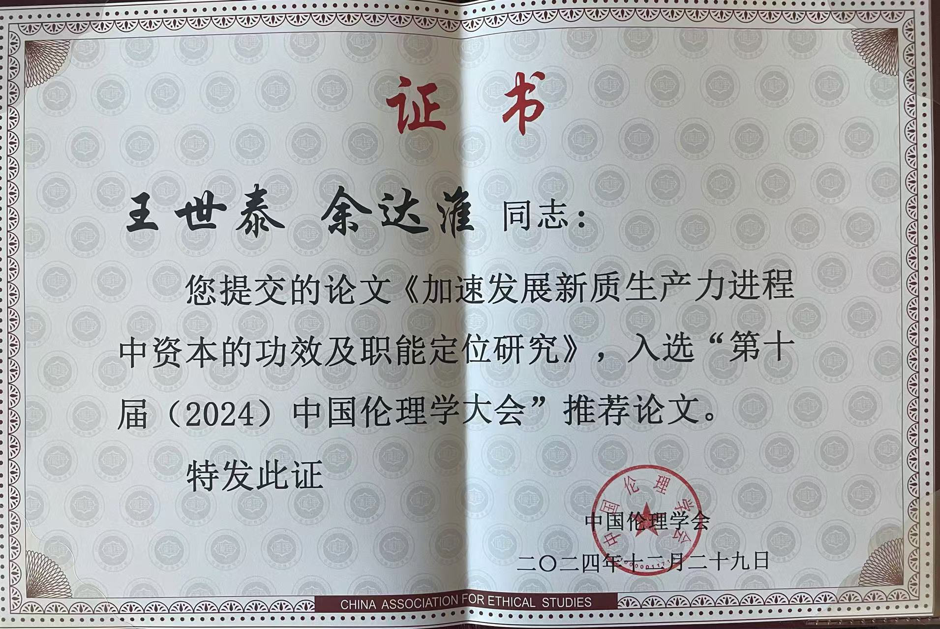 2024年12月27日至29日,第十届(2024)中国伦理学大会暨首届中国企业伦理大会在北京举行。本次大会由中国伦理学会、北京伦理学会联合主办,来自全国600多名专家学者和企业界代表出席大会。本次大会以“伦理道德与企业发展”为主题,由中国马克思主义研究基金会、中国社会科学院应用伦理研究中心、中国人民大学伦理学与道德建设中心、中国政法大学、首都师范大学、北京建筑大学、山西师范大学、辽宁省期刊协会、大连理工大学、浙江工商大学、山东师范大学、温州医科大学附属康宁医院、河南财经政法大学、湖南师范大学、长沙理工大学、华中师范大学、海南医科大学参与协办。中国社会科学网、中国知网对大会开幕式进行了现场直播。黑料不打烊 王世泰博士受邀参加,以论文《加速发展新质生产力进程中资本的功效及职能定位研究——以马克思关于资本的主要识见为考察》向与会学者分享了近期研究心得体会。该论文成果入选“第十届(2024)中国伦理学大会”推荐论文。