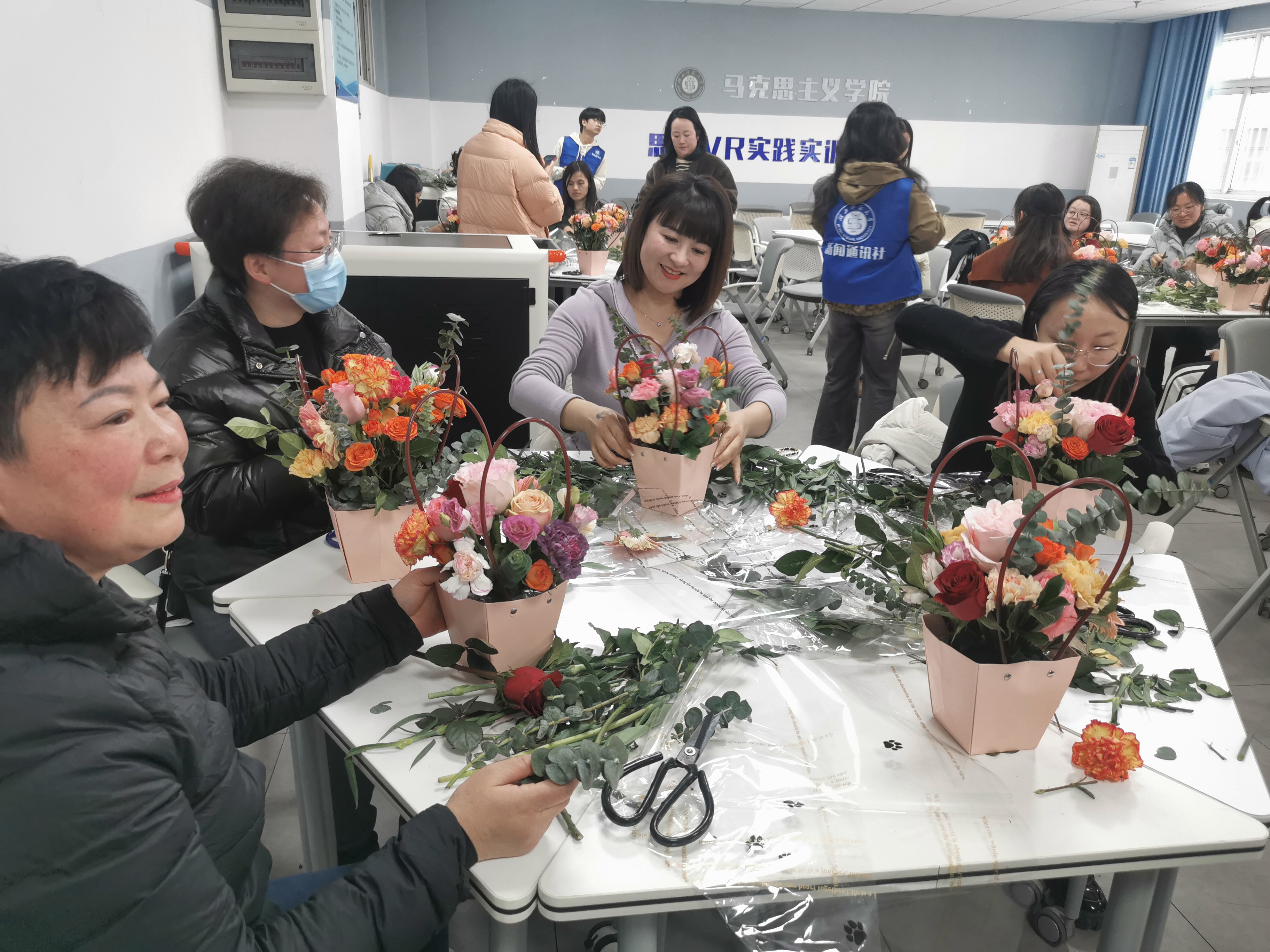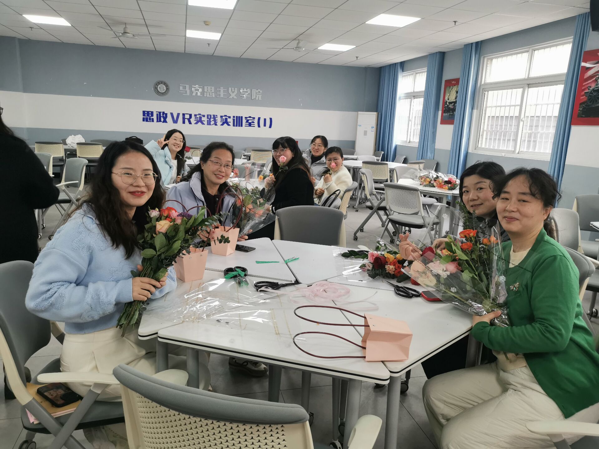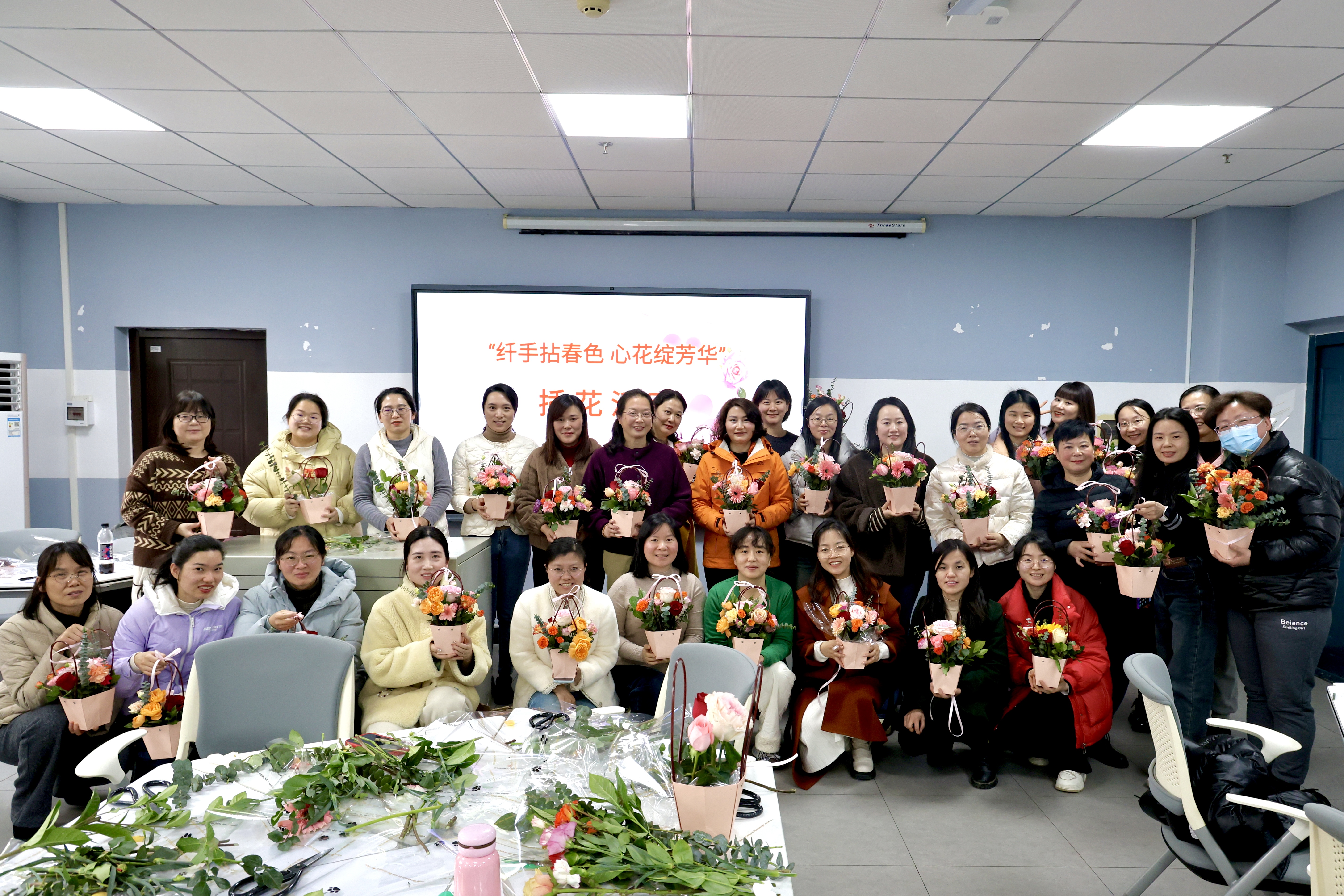 为庆祝第114个国际劳动妇女节,3月8日下午,由校工会主办、马克思主义学院承办的“纤手拈春色 心花绽芳华”主题插花活动在学院VR实验室圆满举行。活动吸引了来自各院系、职能部门的50余名女性教职工参与,学院党委书记程焰出席活动。
