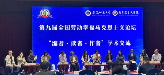 会议期间,来自天津师范大学的秦龙教授、山东师范大学的贾英健教授、中国劳动关系学院的曲霞研究员、上海师范大学的何云峰教授、华南师范大学的肖绍明教授、河北大学的黄云明教授、华侨大学的汤兆云教授、安徽师范大学的李祥兴教授先后在上午的大会上做了精彩的学术报告,为推动劳动幸福、美好生活和中国式现代化学术研究贡献了学术智慧。此外,来自《马克思主义理论学科研究》、《高等学校文科学术文摘》、《人民出版社》等十三家期刊、出版社编辑分别介绍了各自刊物的办刊宗旨、投稿要求与刊物基本情况,同时还与现场的专家、学者和同学们进行了深入的交流,回答了现场观众提出的系列问题。