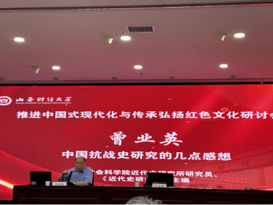 中国社会科学院近代史研究所研究员、《近代史研究》原主编曾业英教授发表了题为《中国抗战史研究的几点感想》的主旨报告。曾业英教授指出,推进中国式现代化需要弘扬伟大的抗战精神,铭记先辈们为中华民族立下的伟大功勋、为世界人民作出的伟大贡献,从历史中汲取前行的力量。