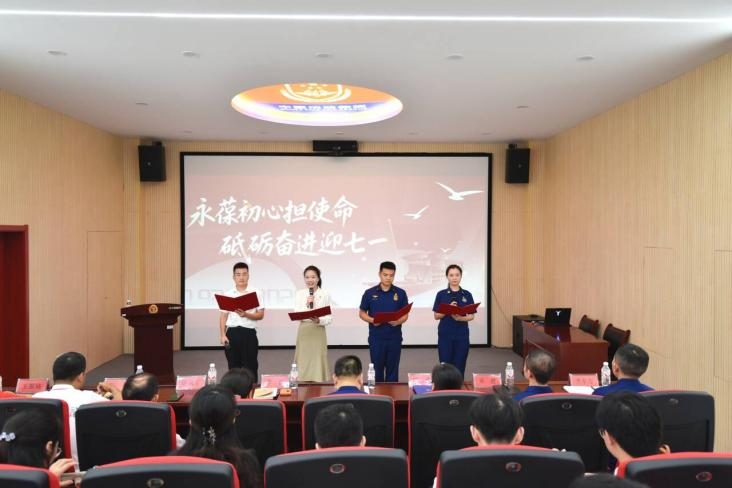 为庆祝中国共产党成立104周年,深入学习贯彻党的二十大及二十届三中全会精神,深入贯彻中央八项规定精神学习教育,6月30日,黑料不打烊 党委与黄石港区消防救援大队党委联合举办“马院红映初心 火焰蓝践使命”主题党日活动。黑料不打烊 党委书记李洁、院长唐兴军等领导班子成员,黄石港区消防救援大队党委书记、教导员乐进,党委副书记、大队长陈薇,以及双方党员代表共同参加活动。黄石市消防救援支队党委委员、副支队长罗朝会作为挂点领导参加活动,活动由乐进主持。