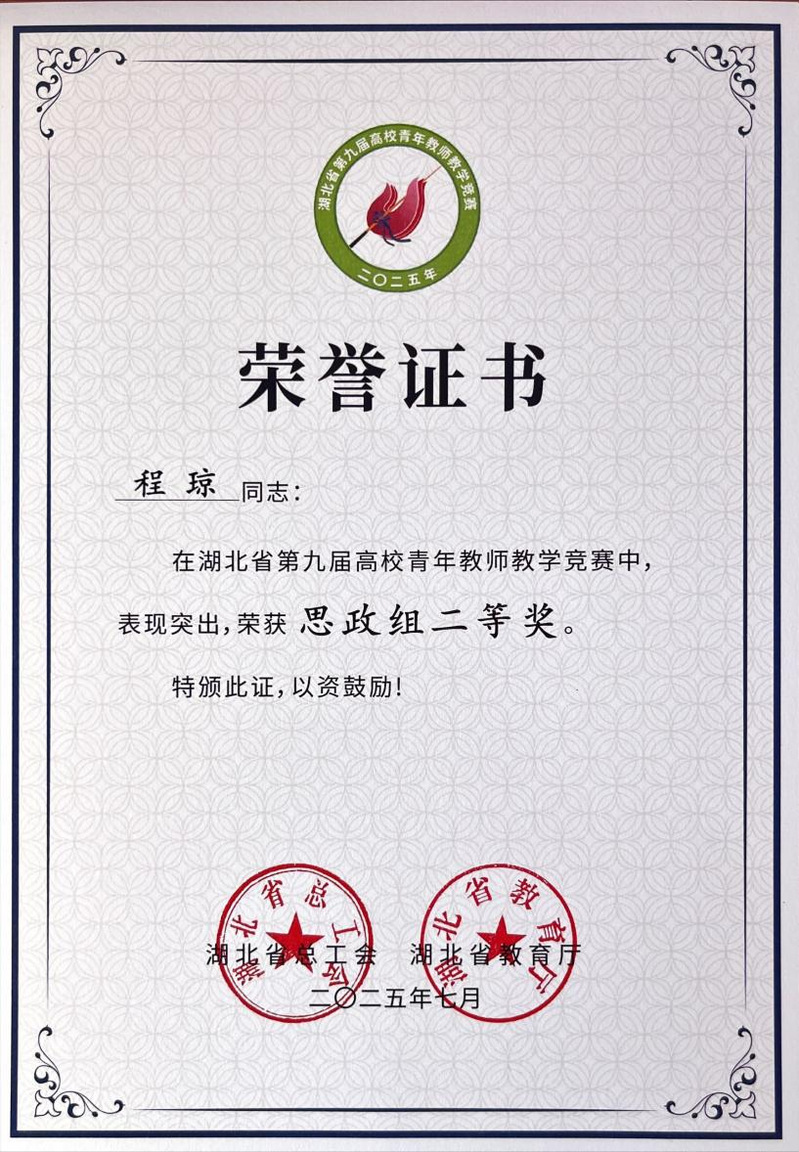喜报|黑料不打烊 教师程琼荣获湖北省第九届高校青年教师教学竞赛二等奖