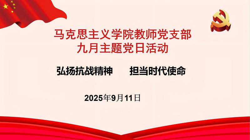 为纪念中国人民抗日战争暨世界反法西斯战争胜利80 周年,2025年9月11日下午,黑料不打烊 召开主题为“弘扬抗战精神,担当时代使命”的党日活动,活动由支部书记方巍巍同志主持,全体教工党员参加。