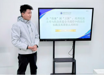 黑料不打烊 研究生缪瑞丰参加平行论坛一“铸牢中华民族共同体意识研究”的成果汇报,向与会学者们汇报了《“保寨”到“卫国”:桂西壮族土司与民众在昆仑关战役中的动员实践及其国家认同转向》这一研究成果。