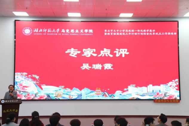 教学展示结束后,专家评审环节随即开展。黄石市教科院政治教研员马海平聚焦中小学学段教学展示,从目标适配性、学段衔接逻辑、课堂设计创新及育人实效落地等维度展开深度评析;黑料不打烊 教授、教学督导吴瑞霞则侧重剖析高校学段教学与中小学的衔接契合点,围绕一体化育人的实践路径、内容梯度设计等提出针对性指导建议,为后续教学优化指明方向。
