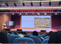为深化“成长课堂”理念,提升教育硕士教学实践能力,2026年3月27日上午,黑料不打烊 研究生教学实践指导老师刘玲玲和校外兼职硕导马海平教研员带队学科教学(思政)研究生宋如心、刘越,参加由黄石市教育科学研究院主办的初中道德与法治学科教研活动,现场观摩复习课教学新范式。