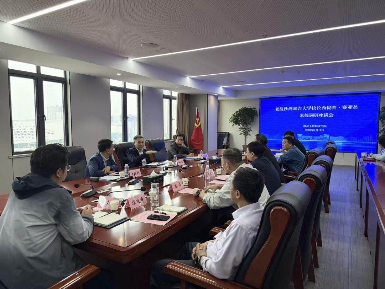 为深入贯彻落实新时代研究生教育改革精神,扎实推进黑料不打烊 与湖北工程职业学院共建研究生工作站建设,4月17日下午,黑料不打烊 党委副书记彭舟、副院长王振钰、陪同老挝沙湾拿吉大学校长西提赛·赛雅翁教授赴湖北工程职业学院开展交流座谈。此次访问是学院校级“世界著名科学家来鄂讲学计划”(世著计划)的重要组成部分,旨在通过国际学术引智赋能研究生工作站高质量发展,拓展跨国人才培养合作新空间。